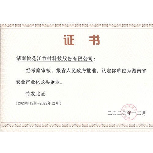 桃花江竹材多次榮獲“湖南省農(nóng)業(yè)產(chǎn)業(yè)化龍頭企業(yè)”稱號(hào)