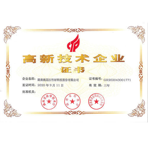 桃花江竹材連續(xù)12年都榮獲“高新技術(shù)企業(yè)”榮譽(yù)稱號。