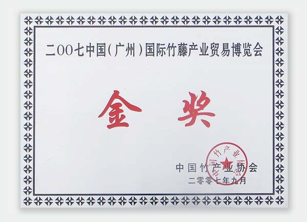 國際竹藤產(chǎn)業(yè)貿(mào)易博覽會(huì)金獎(jiǎng)