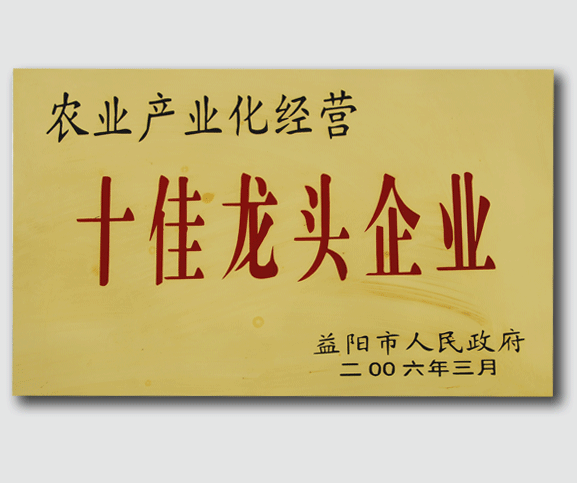 桃花江實業(yè)榮獲“農(nóng)業(yè)產(chǎn)業(yè)化經(jīng)營-十佳龍頭企業(yè)”榮譽稱號。